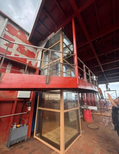 The hydraulic system allows the lift to be installed without a pit or deep shaft, making it ideal for existing structures or limited space facilities.